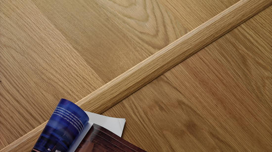 Wood solid transitions mouldings are available in different sizes to be used in the transition to other surfaces. The mouldings are fastened to a metal rail, and it is not necessary to secure them with screws. Wood solid transition mouldings are available in different types: